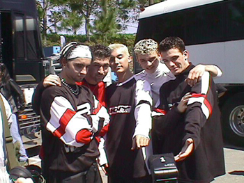 ![]() Hey wzup!Welcome to my site dedicated to the guys of "N Sync". N Sync are not the Backstreet Boys,in fact, the two groups are very different,and I am a huge fan of both bands.This summer,I met N Sync at a local mall(actually,the biggest mall in America!)located in Bloomington Minnesota. They were very courteous,although I could tell they were extremely exhausted.N Sync first hit the pop music scene in early '98 with their single "I Want You Back",and now,their album has gone platinum in Canada,and their US album has reached the top five on the "Billboard" charts. |